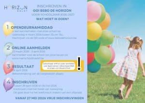 Voor schooljaar 2026-2027 kan u kennismaken met de school op woensdag 04/03/2026, inschrijven voor de opendeurnamiddag kan HIER